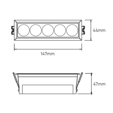 Conçu pour un encastrement discret, ce spot présente des dimensions de coupe de 35 mm x 140 mm, permettant une intégration harmonieuse dans diverses applications décoratives. Avec un indice de rendu des couleurs de 90 (CRI90), il assure une restitution fidèle des couleurs, créant une ambiance chaleureuse et accueillante.